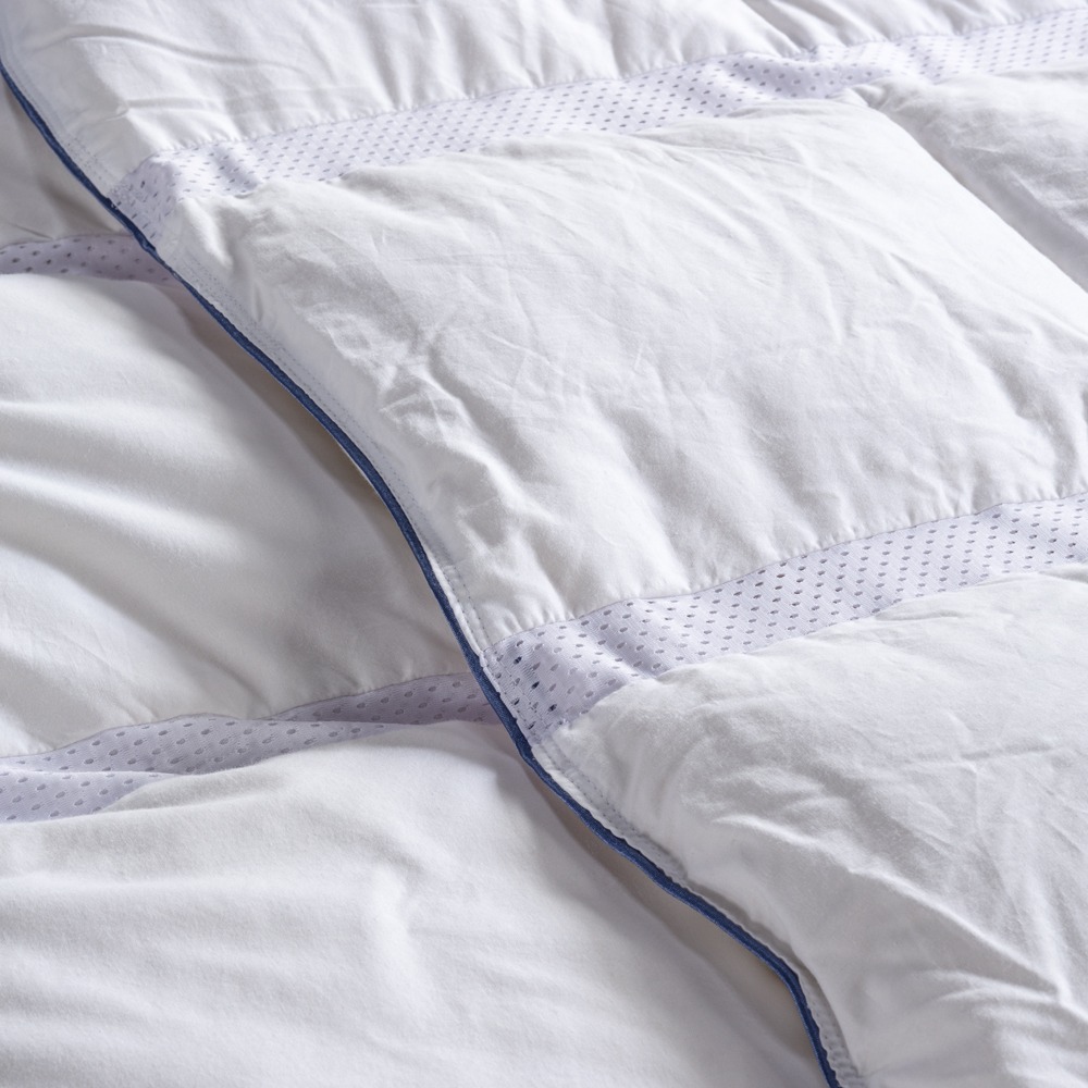 1.048 gr. HCS elyaf dolguya sahip Clima Sleep Aria hava kanallı yorgan, elyaf dolgulu kapitone şeritler ile hava geçirgenliği sağlayan file şeritlerin birleşiminden oluşmaktadır.