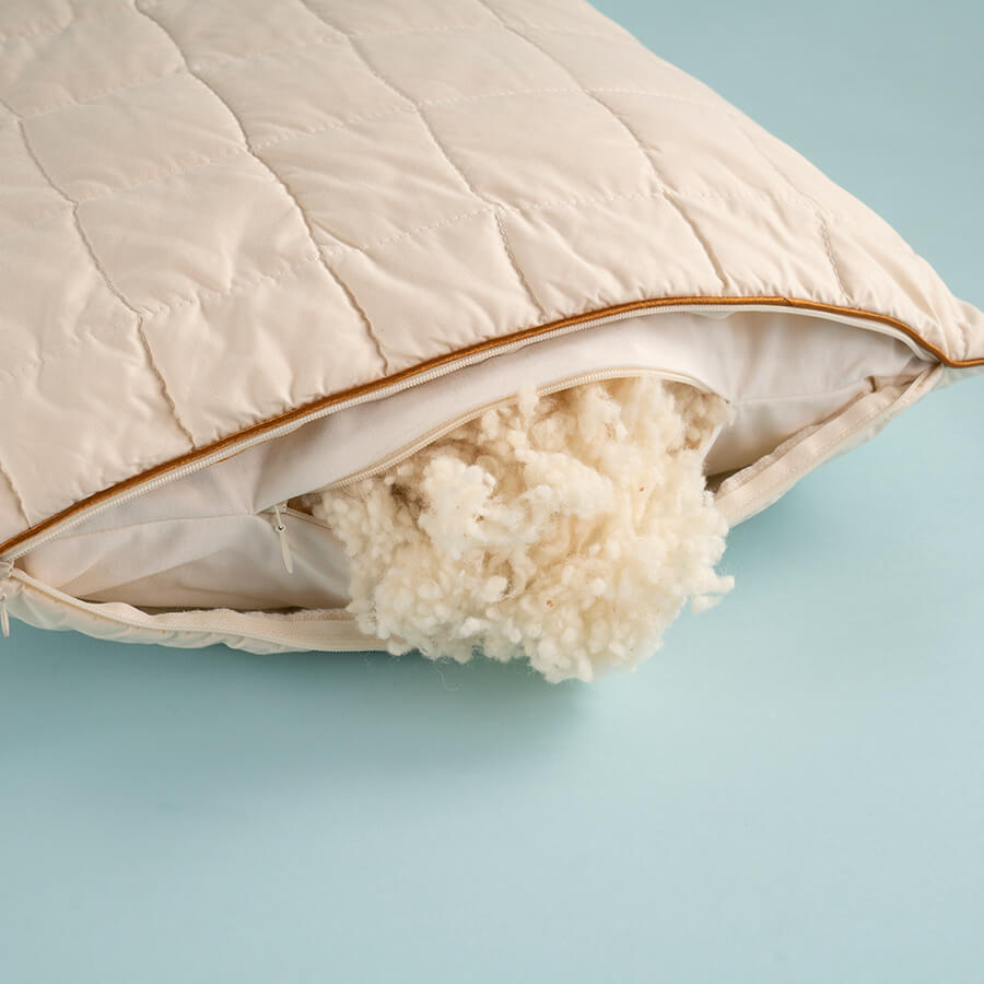 Thanks to the zippered inner pillow, the British Bead wool filling inside can be adjusted to the desired height, accommodating various sleep positions.